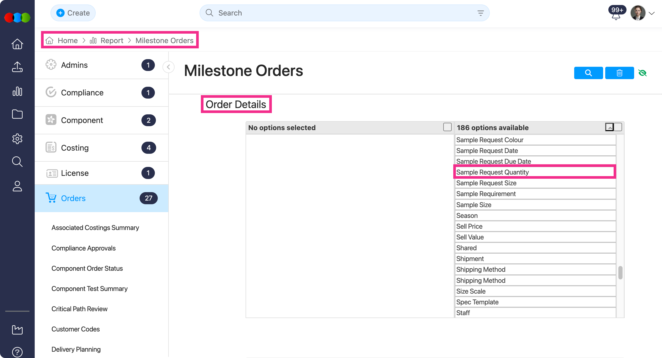 Sample Request Quantity allows you to view sample requirement quantities directly in your milestone reporting.