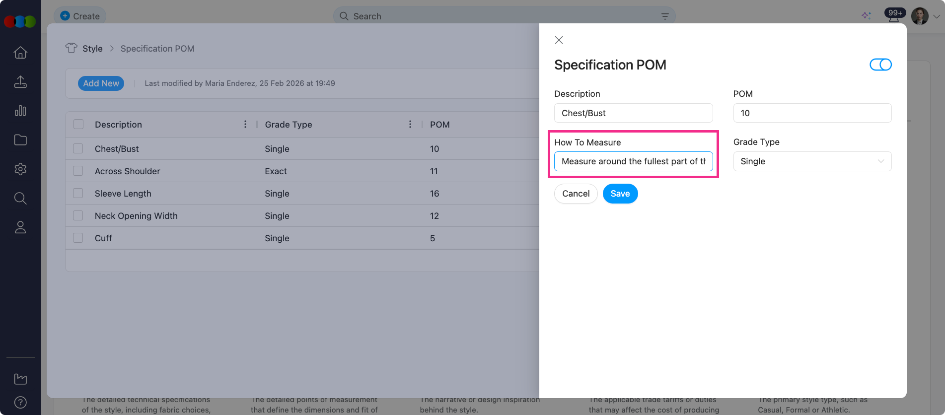 Now, you can capture detailed measurement instructions at the POM level and have them flow through to your spec templates and style specifications, improving consistency and reducing ambiguity.