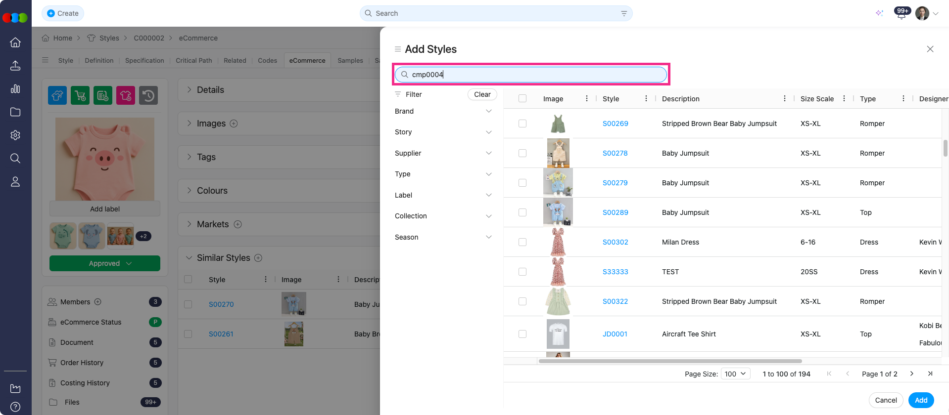 We've enhanced the search experience in Style > eCommerce > Similar Styles to make it easier to discover related design options.