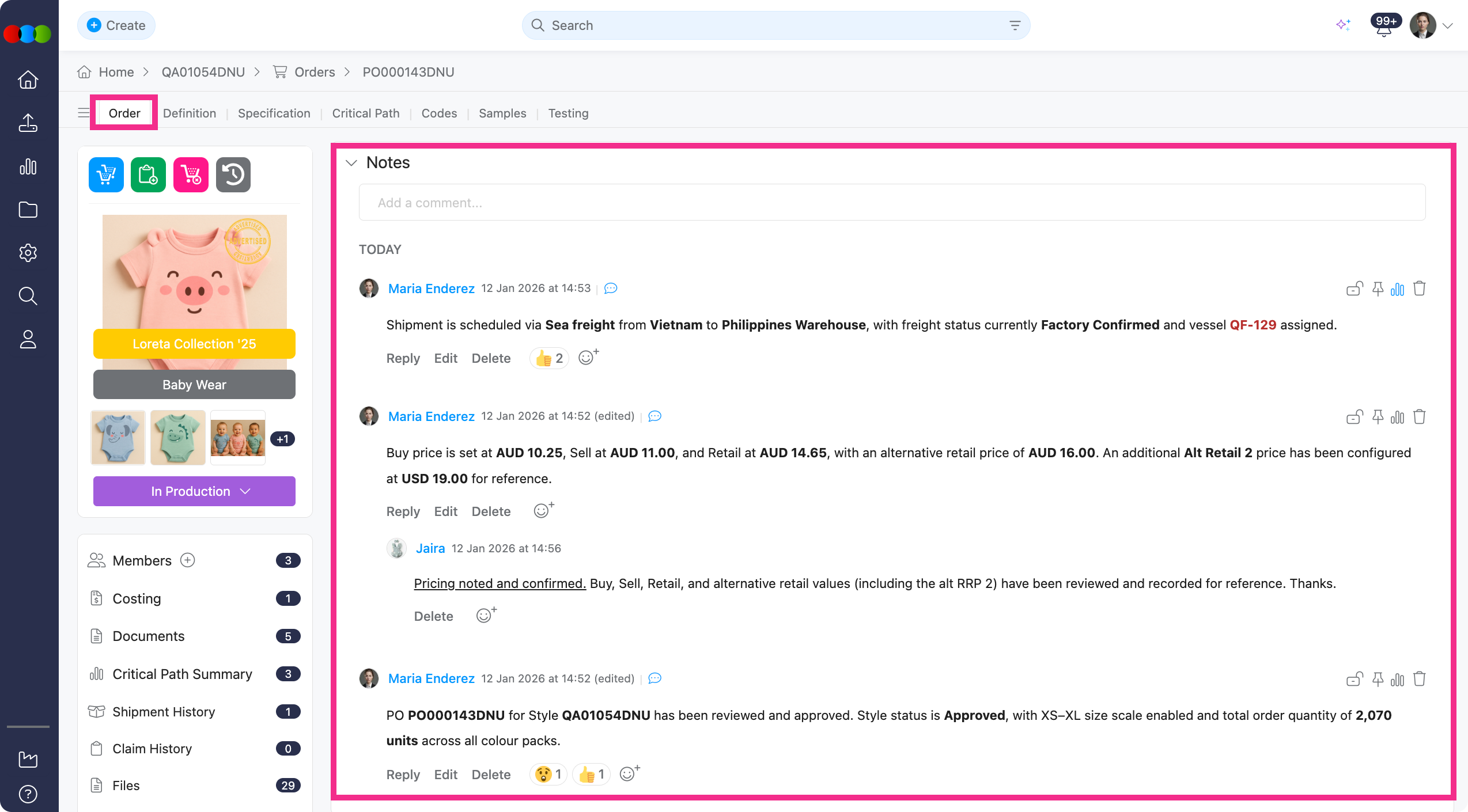 Order > Notes