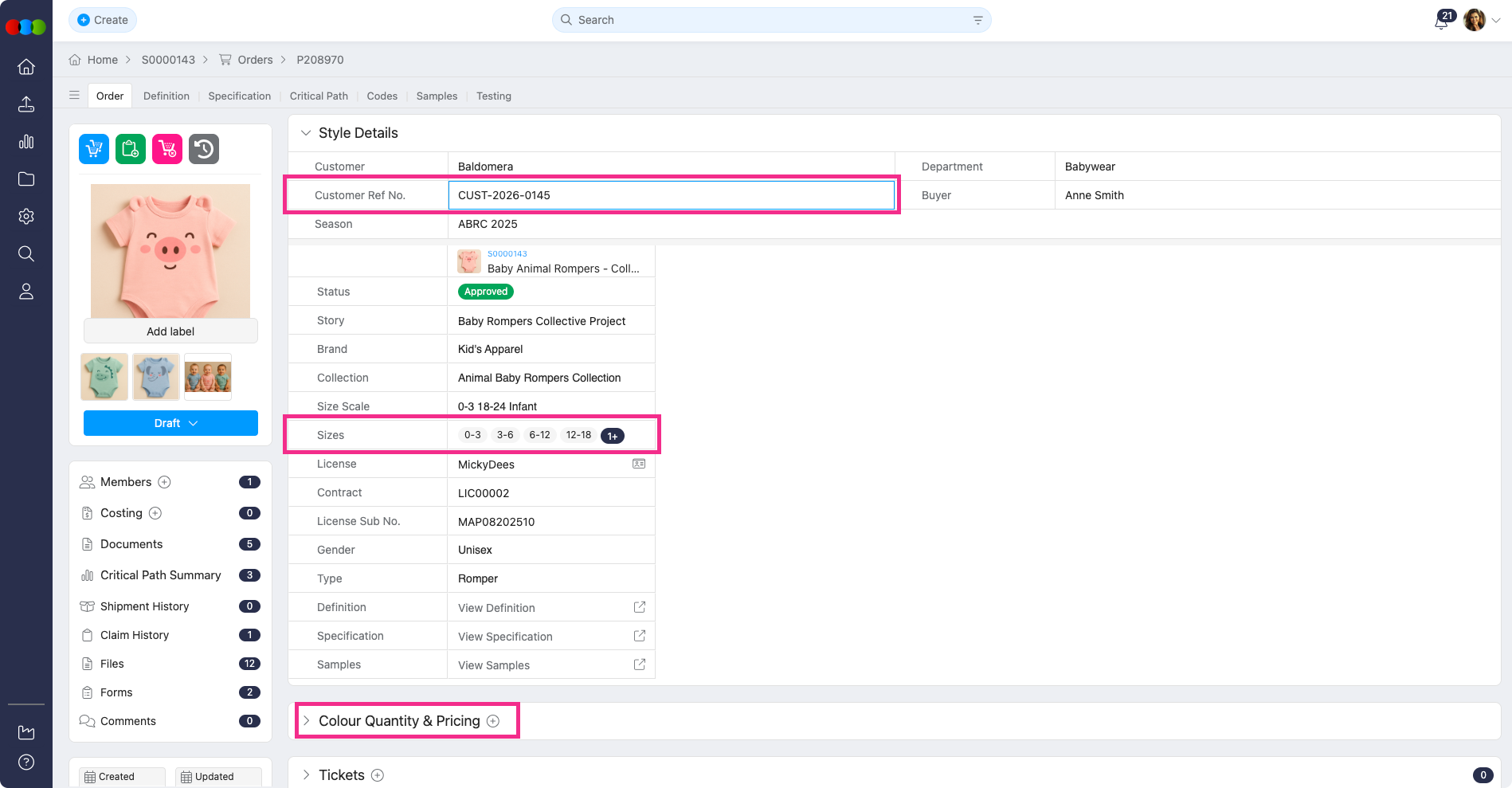 - Customer Ref No. Position - The Customer Ref No. field has been moved to be located in the Style Details section.