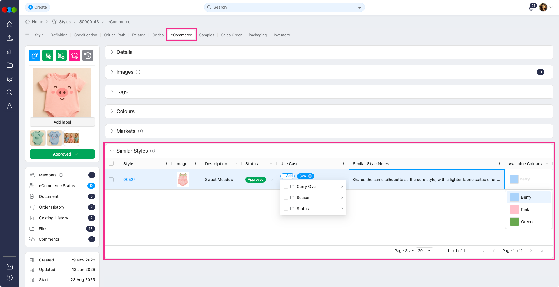 You can now add and remove columns in the Similar Styles section, enabling you to create a customised view that displays exactly the information you need. This functionality provides three column types to choose from: