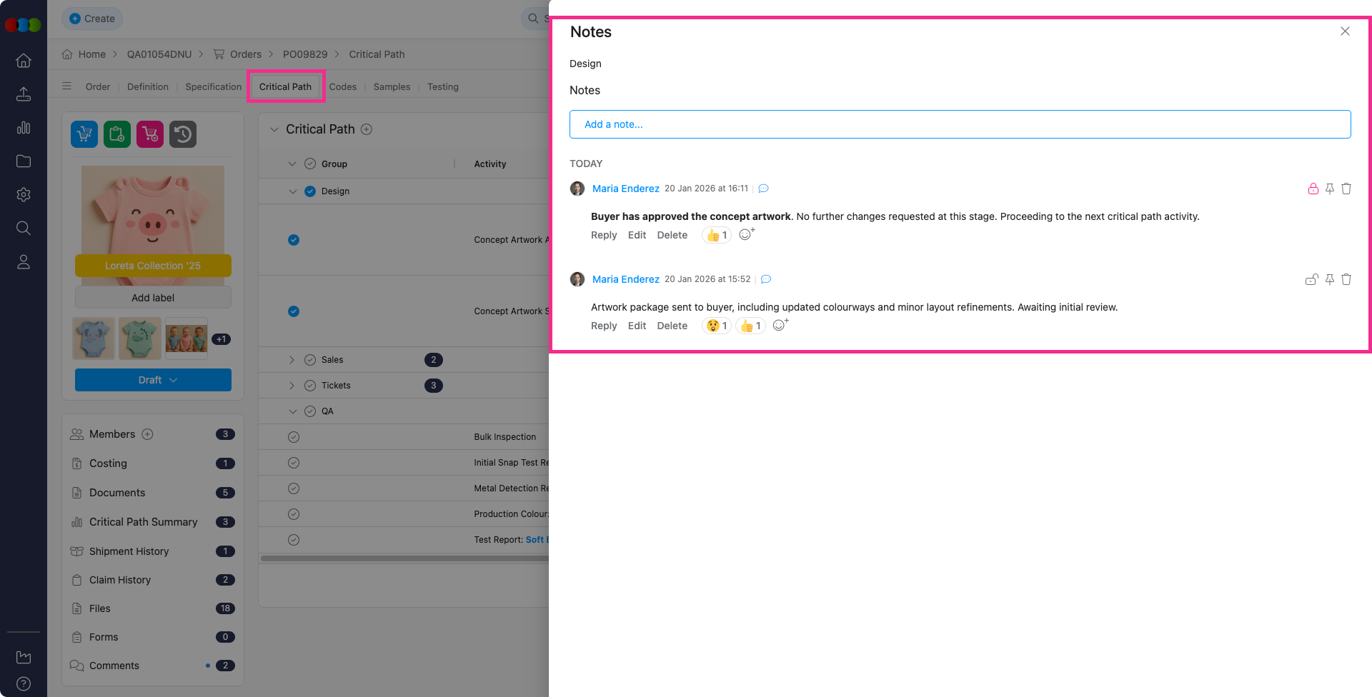We've restored the Notes feature for your Order > Critical Path tab, providing a centralised workspace for capturing key decisions, outcomes, and essential information directly within each Critical Path activity group.