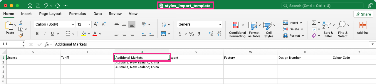 Style Import Template > Additional Markets