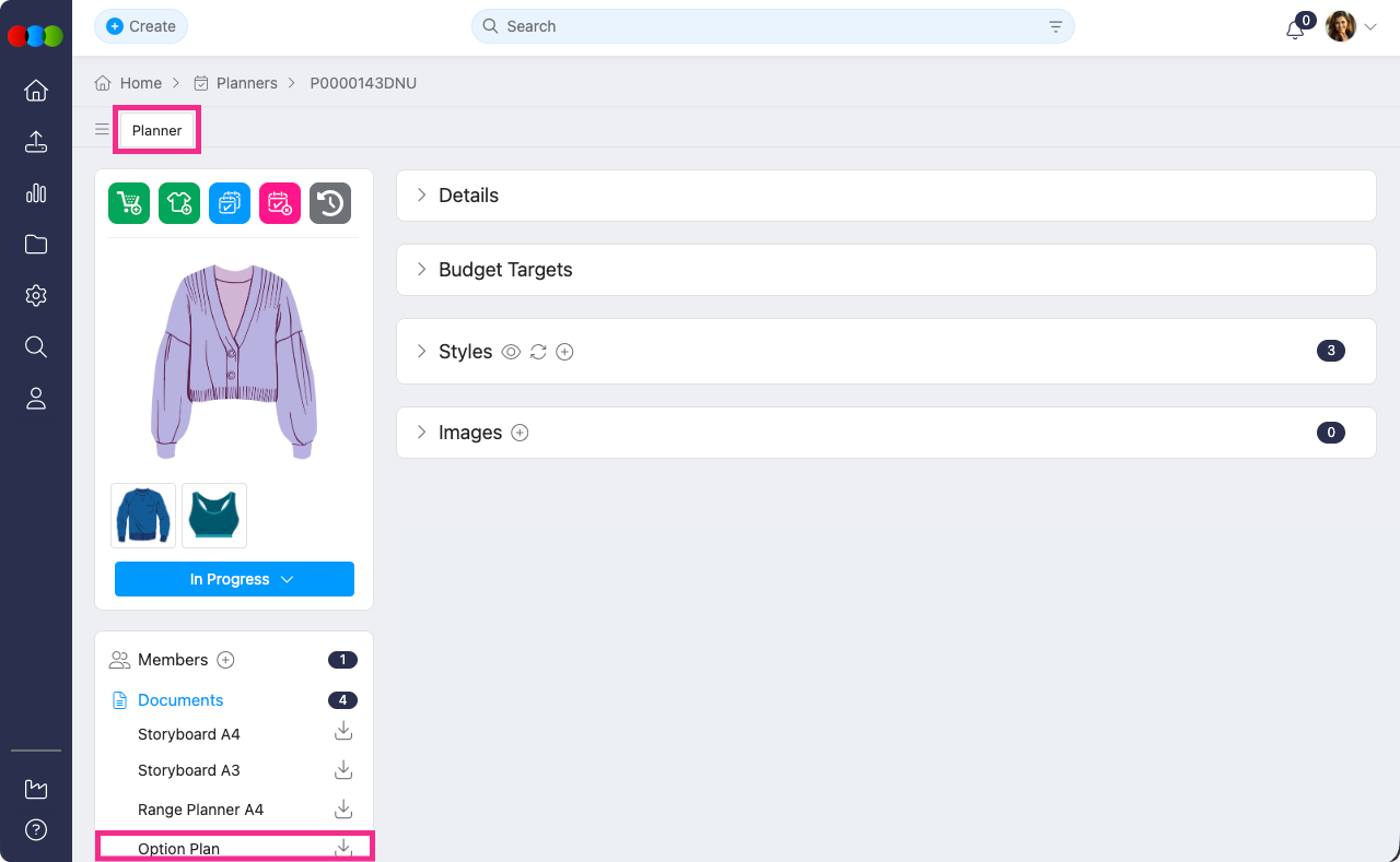 Planner > Documents > Option Plan
