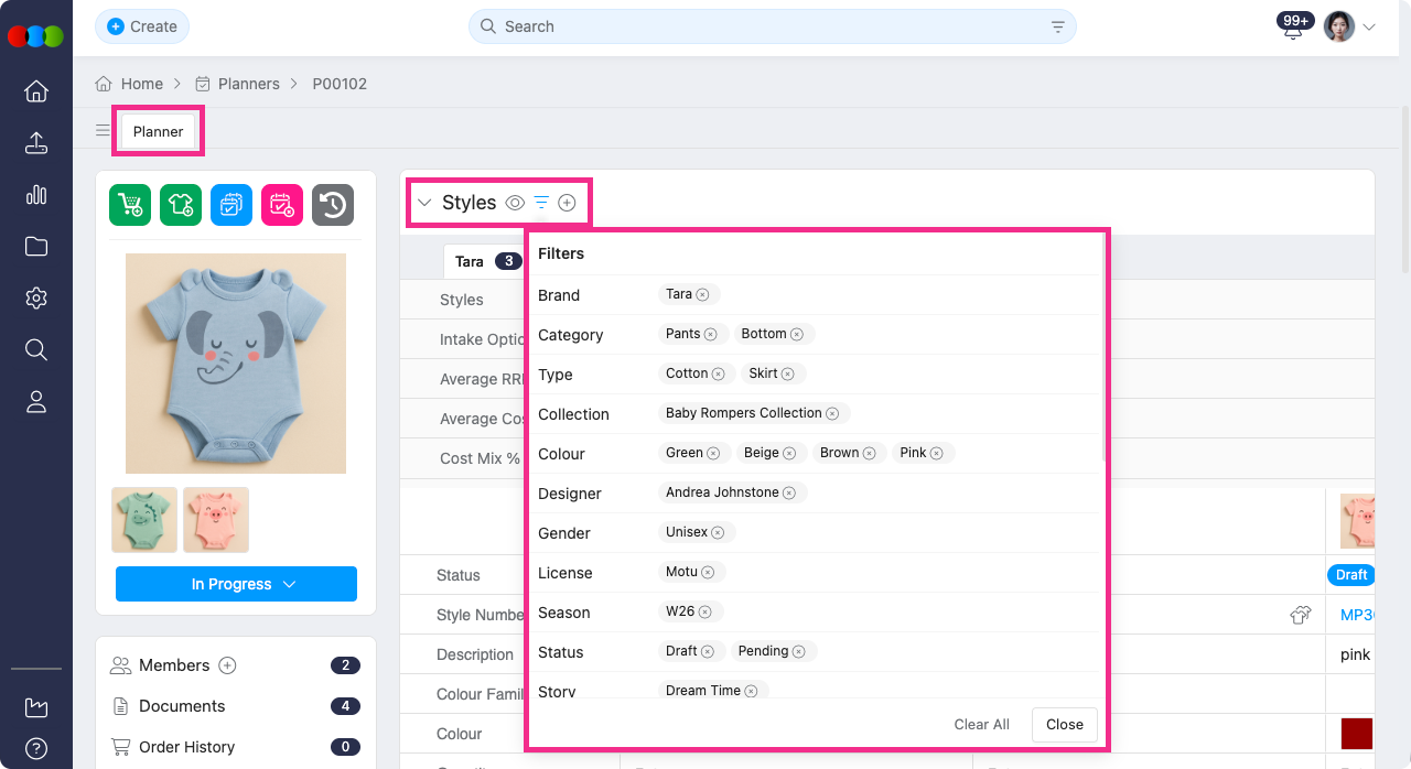 - Each Style is now separated by colour, giving better visibility of colourways within the planning document.