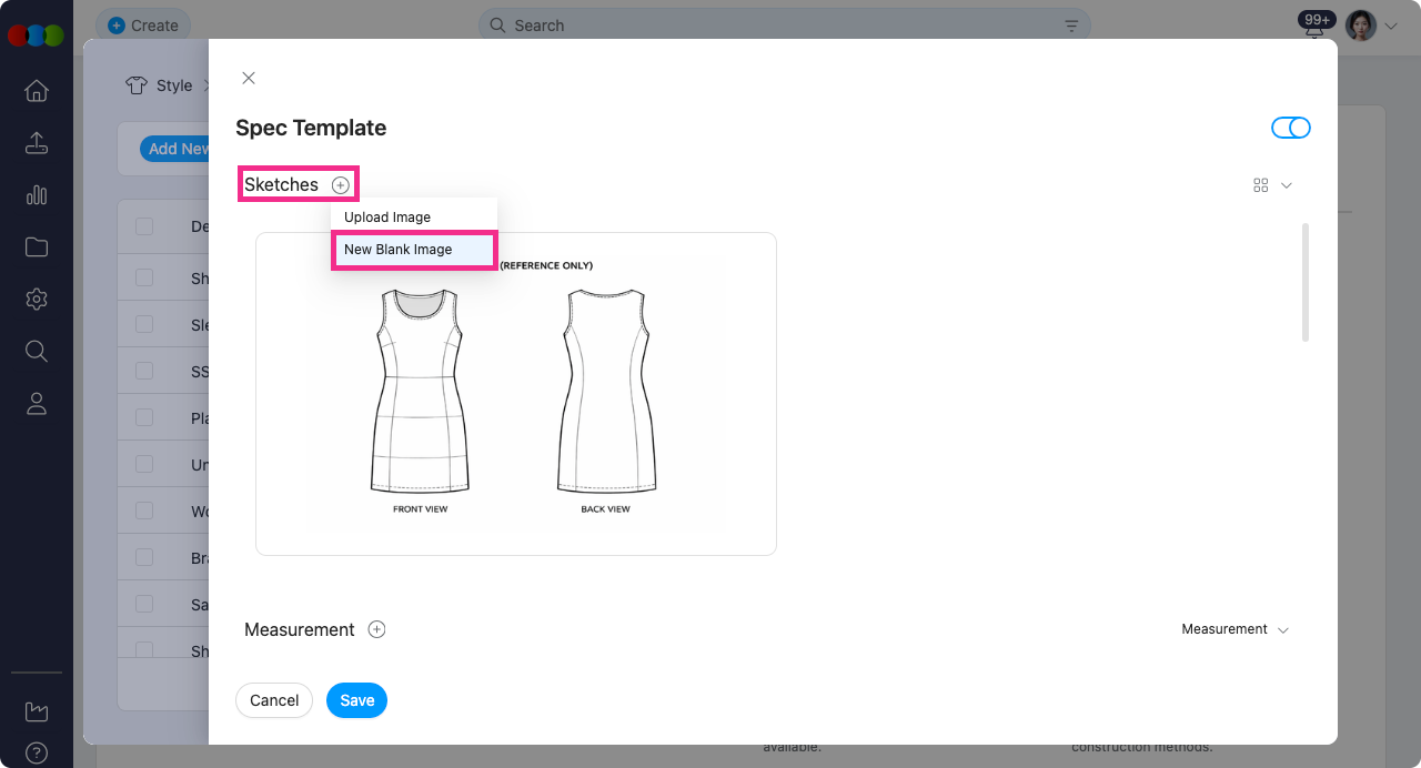 We've added a new option in creating sketches in this section. You can now create a new blank image. This is a similar function in Style > Specification > Sketches.