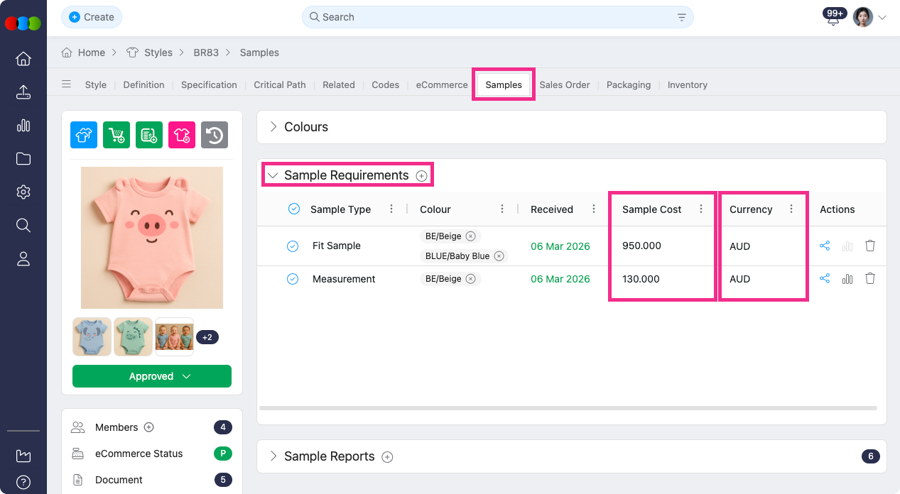 We've added the ability to track Sample Cost and Currency on Sample Requirements across Style, Order, and the Supplier Portal.